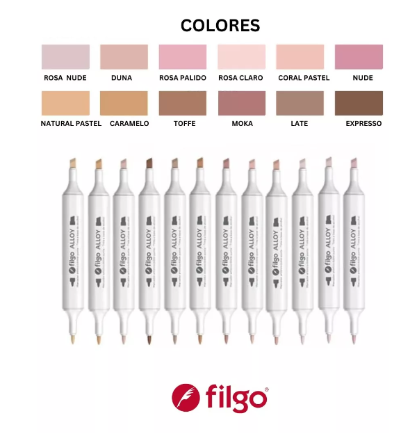 Marcadores Filgo doble punta Alloy tonos piel x 12