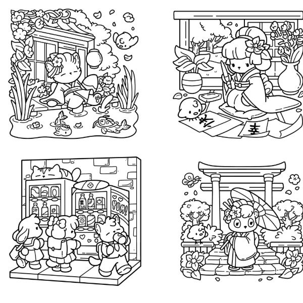 *42 hojas con ilustraciones de Cozy Japon en hojas de 120 gramos, ideales para pintar con marcadores