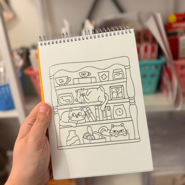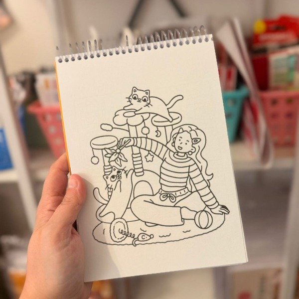 *60 hojas con ilustraciones de Cat en hojas de 120 gramos, ideales para pintar con marcadores