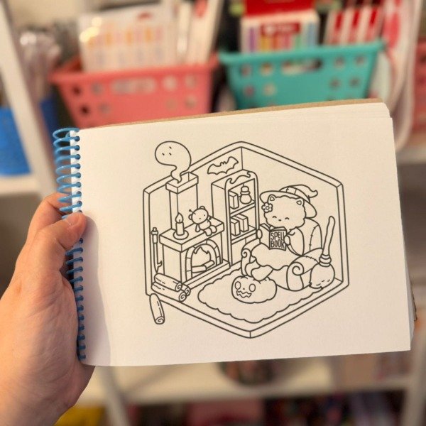 *42 hojas con ilustraciones de Halloween en hojas de 120 gramos, ideales para pintar con marcadores